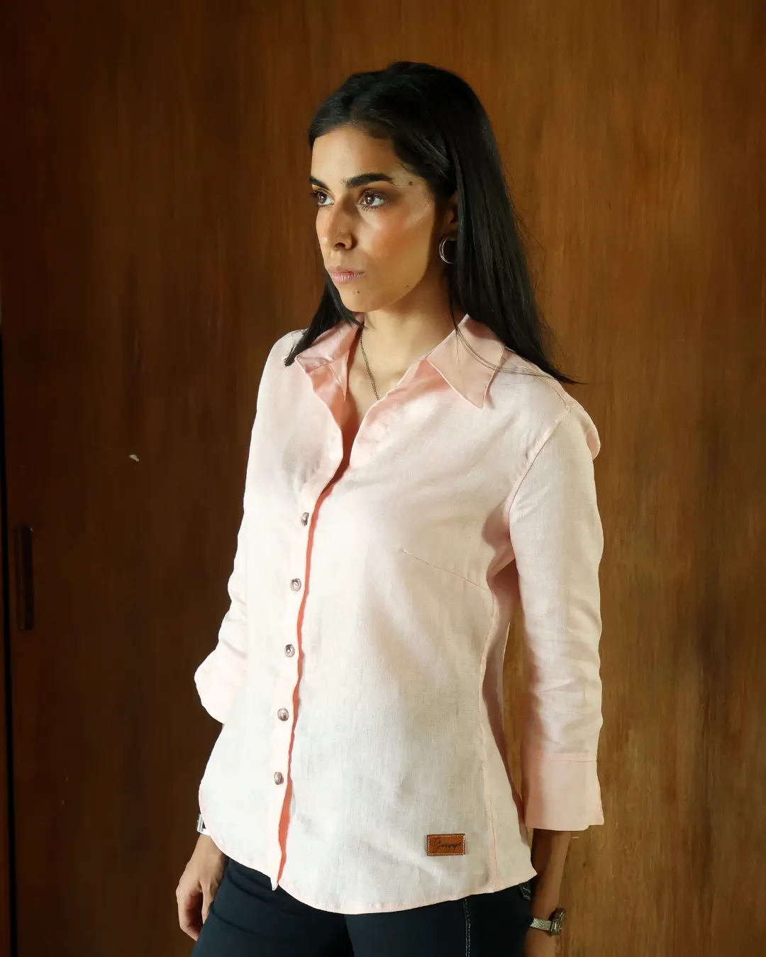Camisa de 100% lino con pinzas en busto y espalda para resaltar cintura y dar una forma femenina