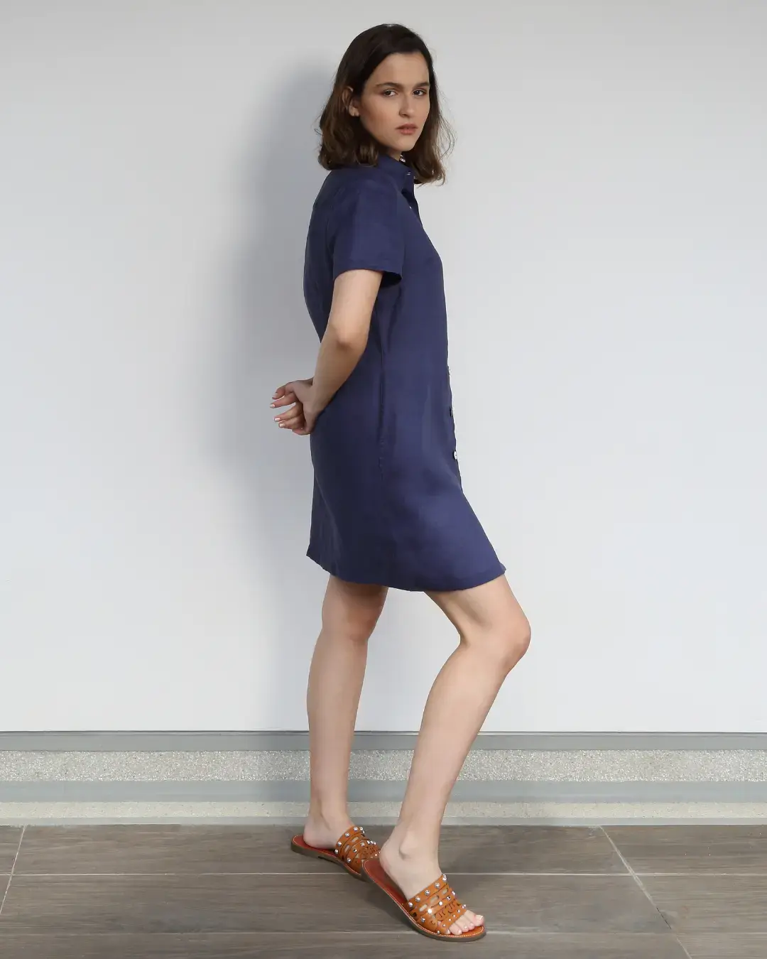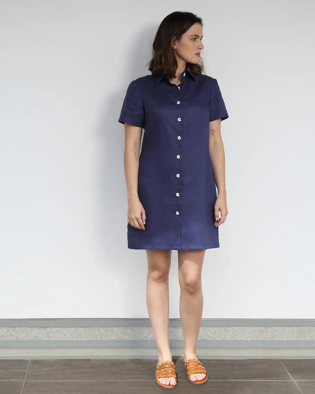 Vestido de 100% lino con pinzas en busto y espalda para resaltar cintura y dar una forma femenina, perfecto para días calurosos, usar con sandalias o sneakers.